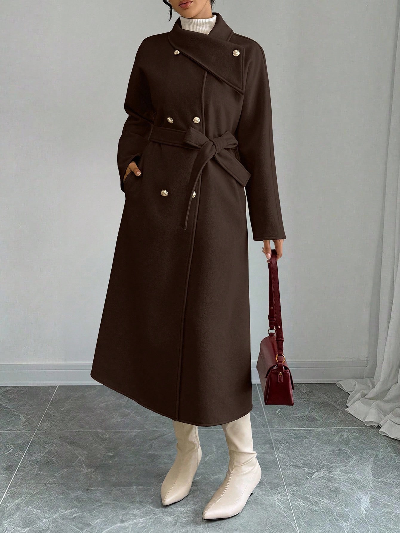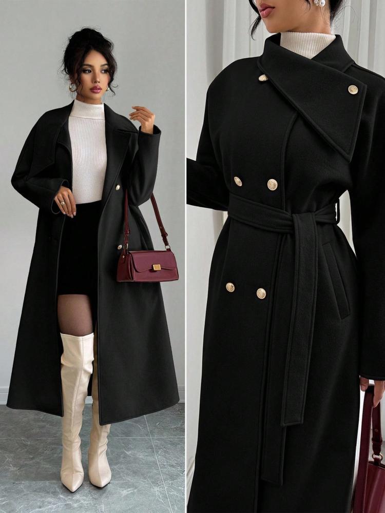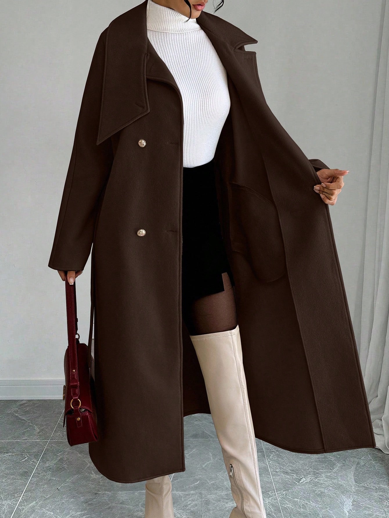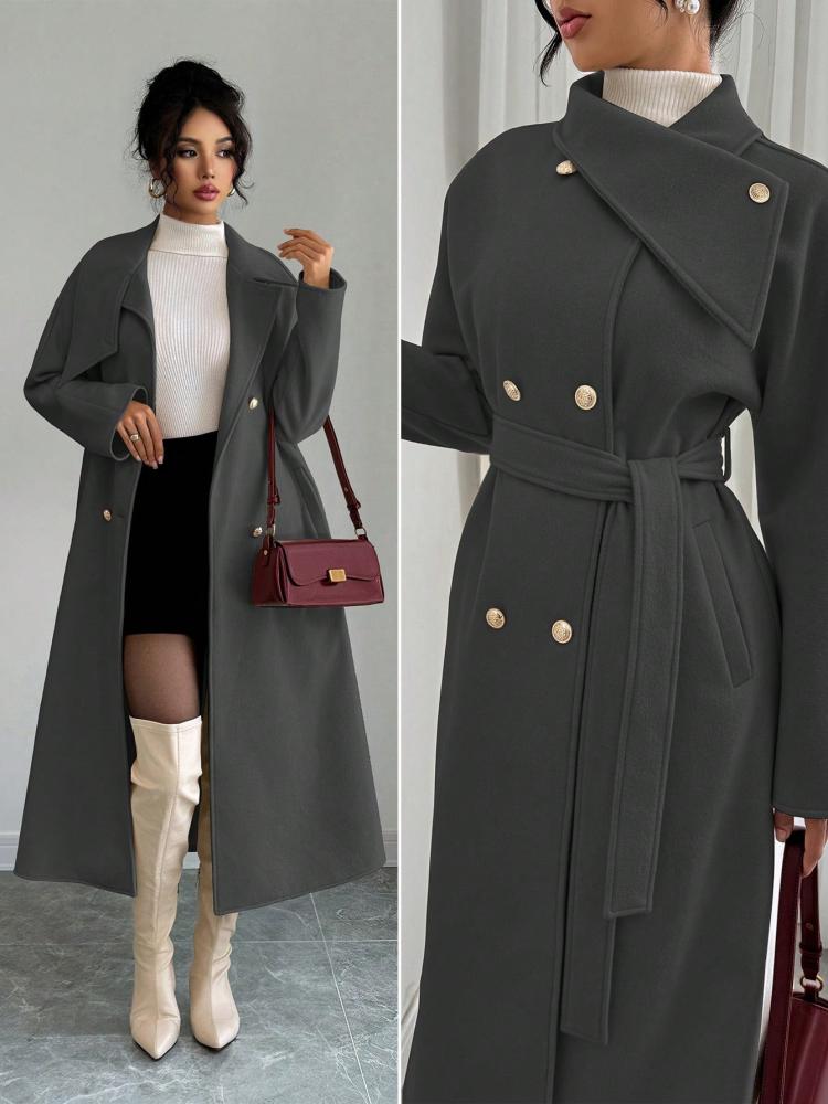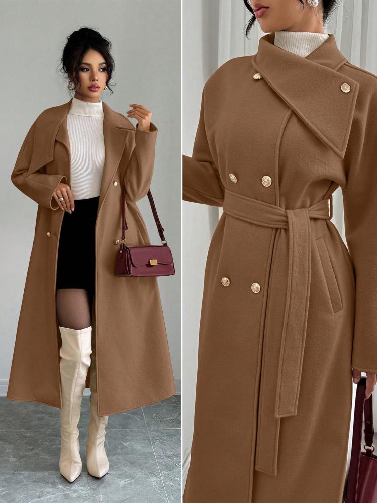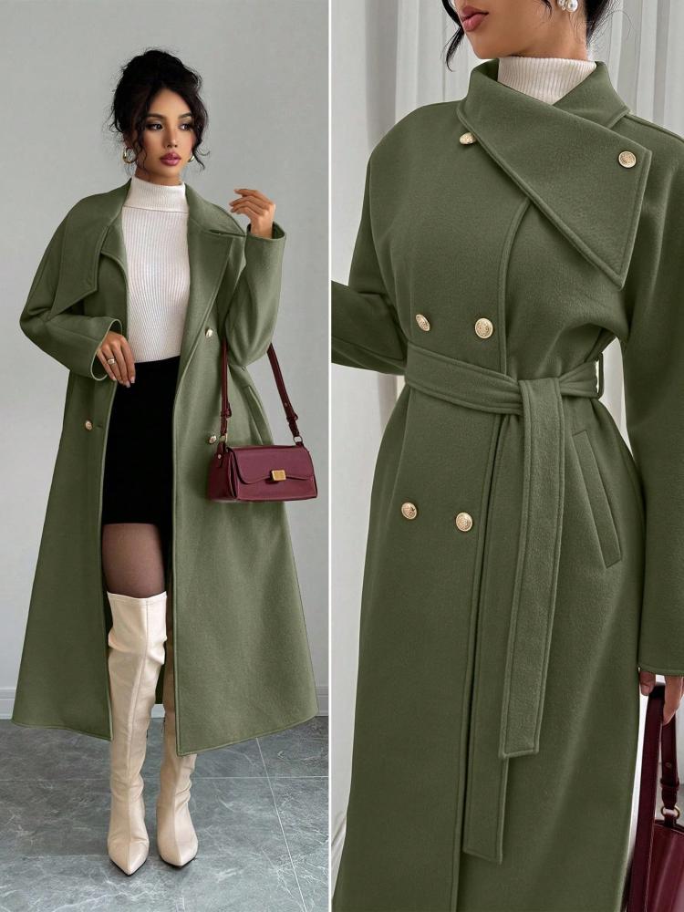 معطف صوفي أنيق بأزرار مزدوجة للنساء، موضة للتنقل، خريف/شتاء
