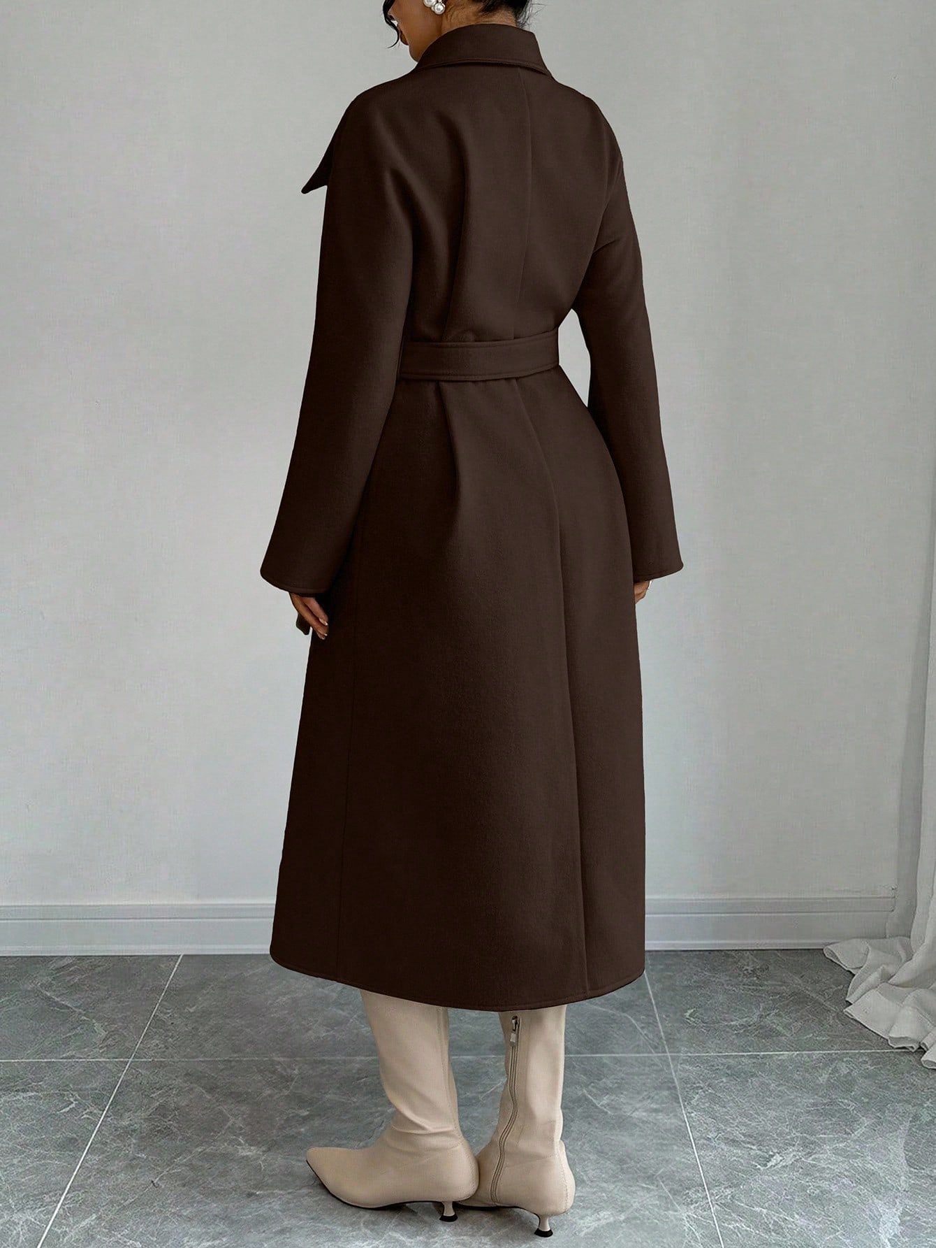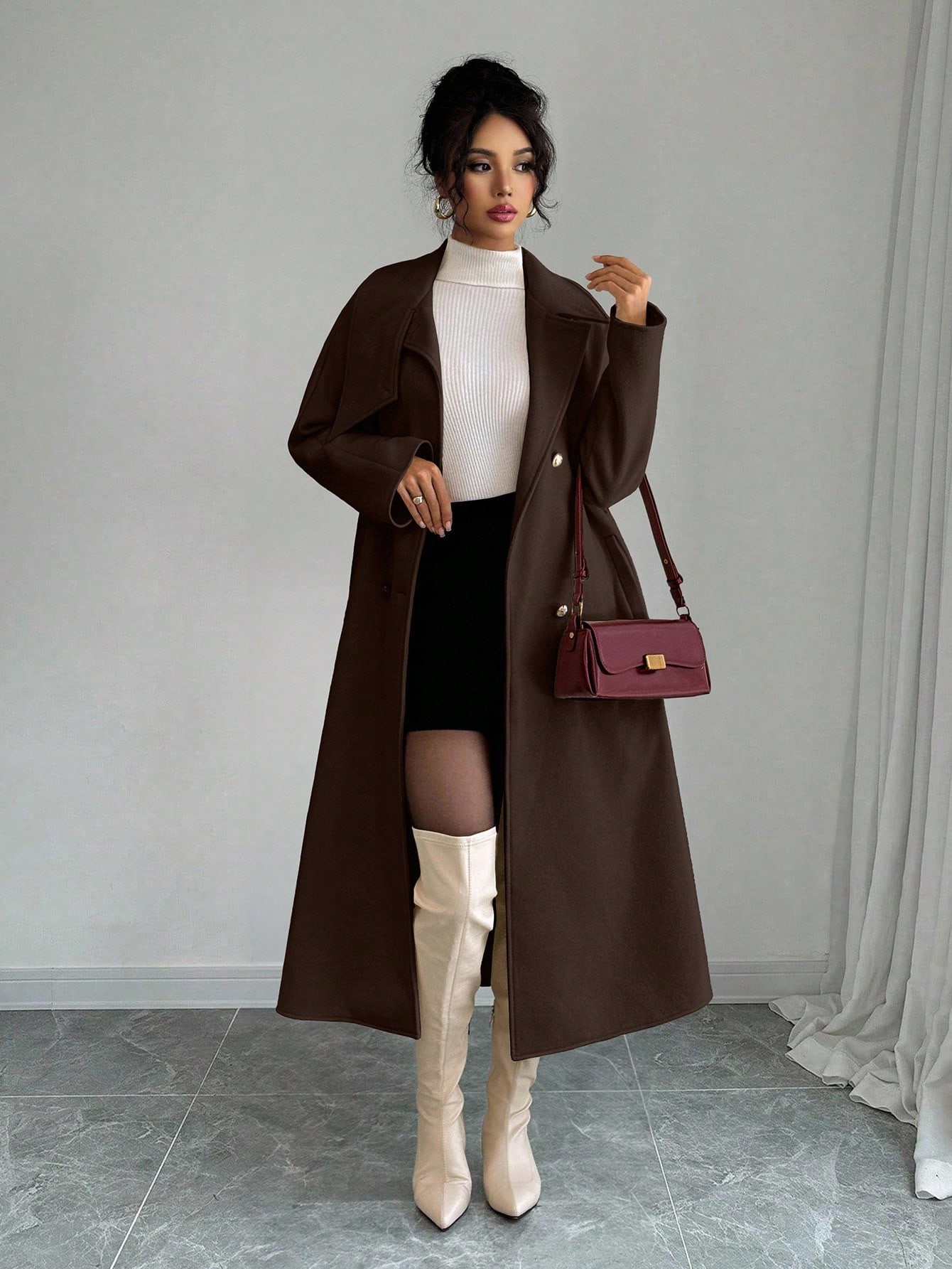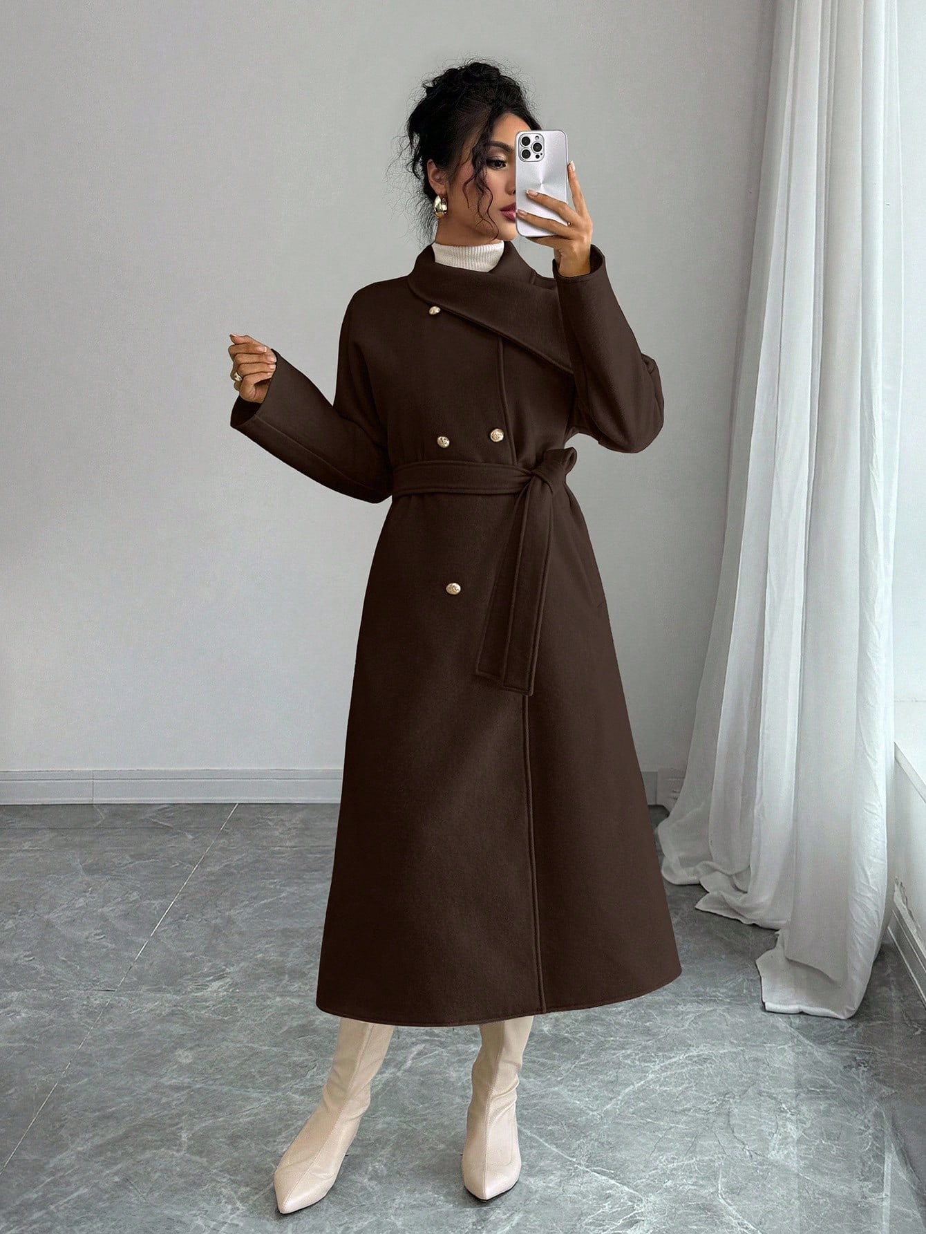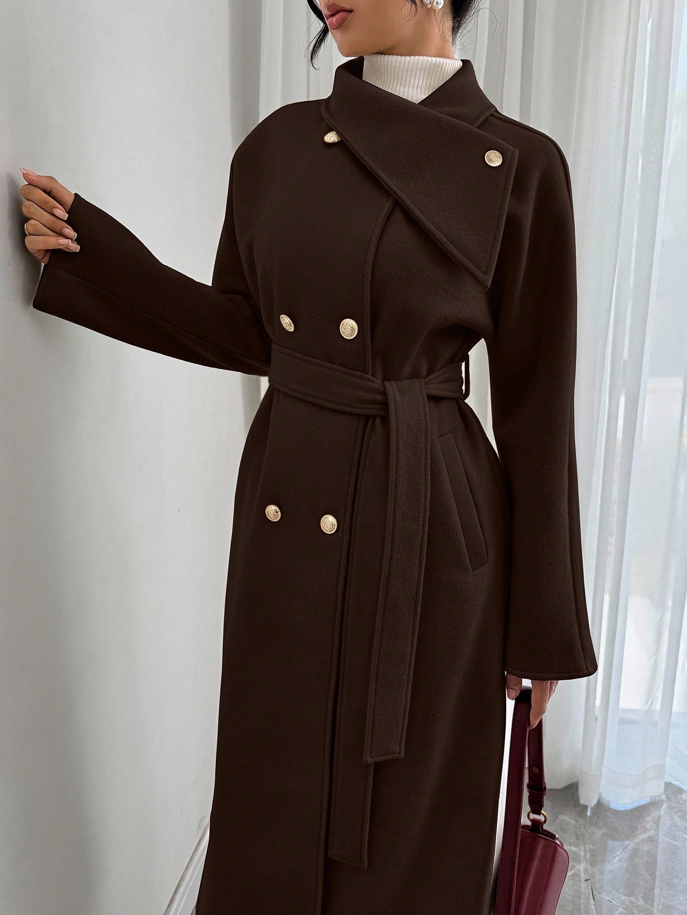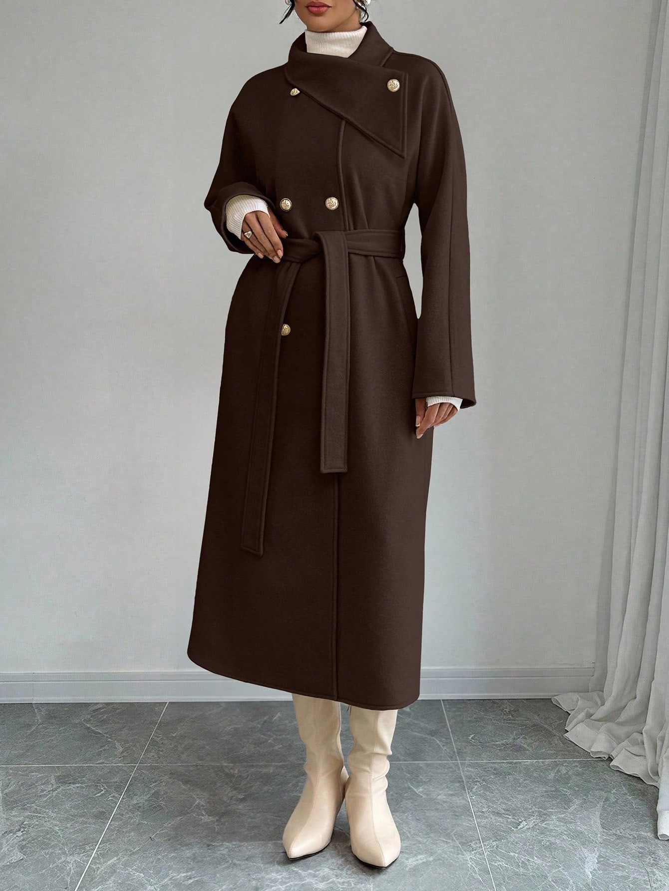 معطف صوفي أنيق بأزرار مزدوجة للنساء، موضة للتنقل، خريف/شتاء